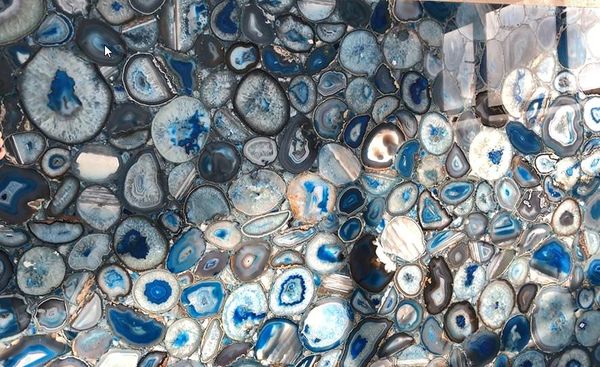 Современные технологии позволяют из небольших агатов, эпоксидной смолы путем обработки в барокамере создавать цельные плиты, которые разрезают на тонкие пласты. Благодаря особой структуре и природной красоте агата такие панно в интерьере с использованием подсветки становятся невероятно красивым украшением и зачастую главным акцентом.