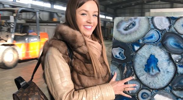 Для одного из проектов наши партнеры Stone Decor Astana* подготовили панно из голубого агата, которое станет роскошным украшением акцентной стены в интерьере спальни.