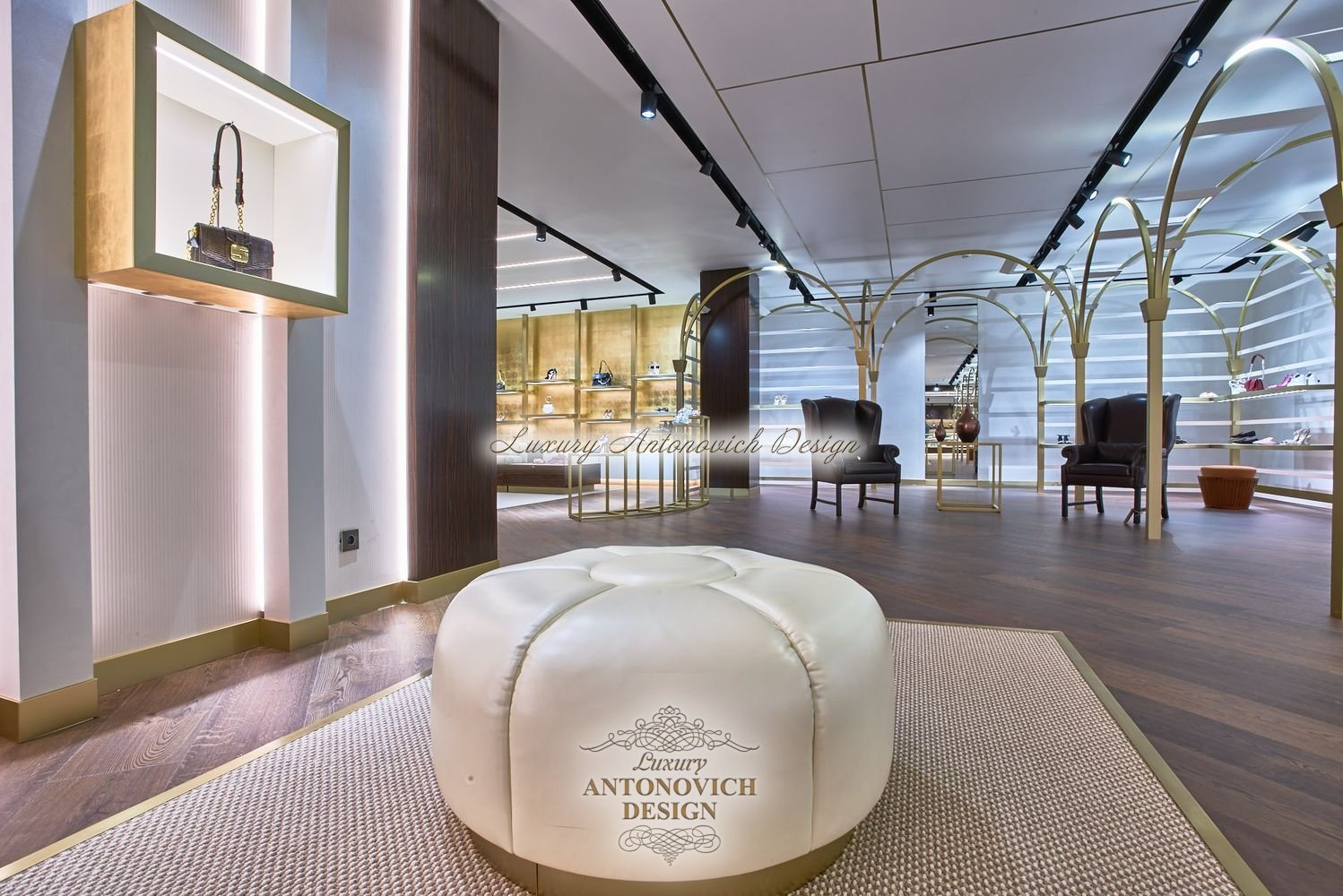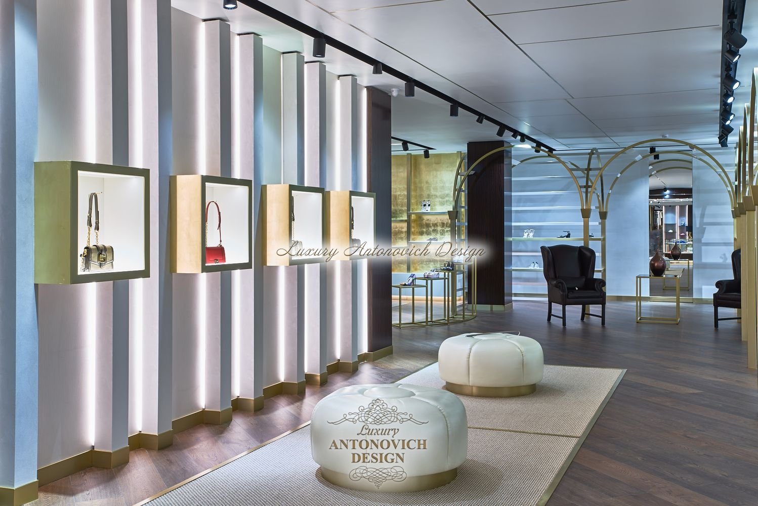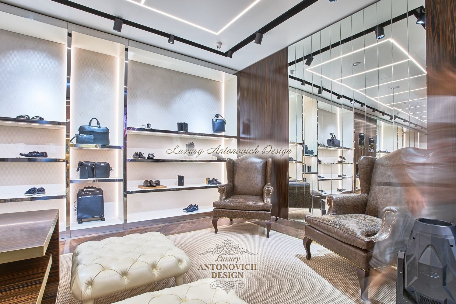 В целом дизайн интерьера магазина это отдельная сфера искусства, которая максимально приближена к бизнес-процессам. Если в интерьере дома во главу угла ставится комфорт и уютные ощущения его владельцев, то в интерьере магазина, напротив, главным является комфорт и уютные ощущения покупателей. И задача угодить всем вкусам, представлениям о прекрасном невероятно интересна и сложна. Смело можно утверждать, что с задачей создать красивый магазин элитной обуви и аксессуаров блестяще справились Елена Антонович и Светлана Антонович.