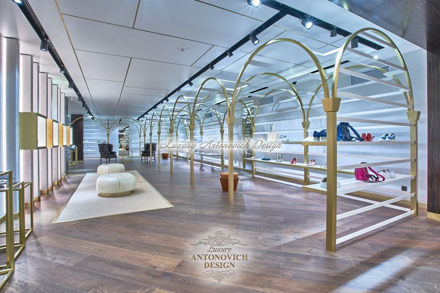В целом дизайн интерьера магазина это отдельная сфера искусства, которая максимально приближена к бизнес-процессам. Если в интерьере дома во главу угла ставится комфорт и уютные ощущения его владельцев, то в интерьере магазина, напротив, главным является комфорт и уютные ощущения покупателей. И задача угодить всем вкусам, представлениям о прекрасном невероятно интересна и сложна. Смело можно утверждать, что с задачей создать красивый магазин элитной обуви и аксессуаров блестяще справились Елена Антонович и Светлана Антонович.