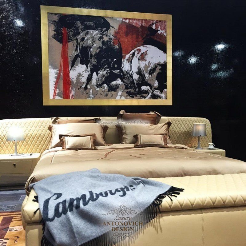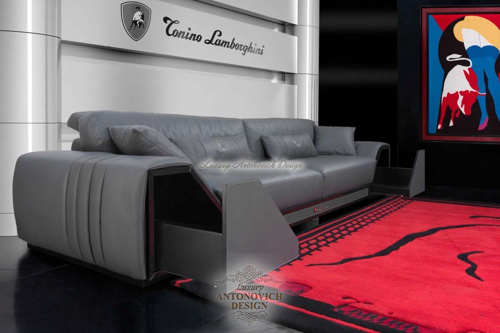 Элементы мебели украшены эмблемой Lamborgini – разъяренным быком на щите.