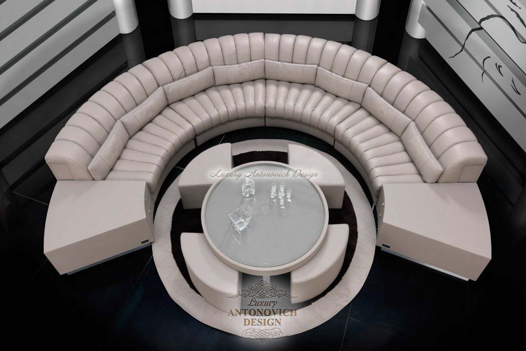 Округлые формы диванов и кресел, навеяны ретро-дизайном кожаных автомобильных салонов, 60-х годов прошлого века. Поклонников гоночных авто порадуют узнаваемые элементы дизайна.