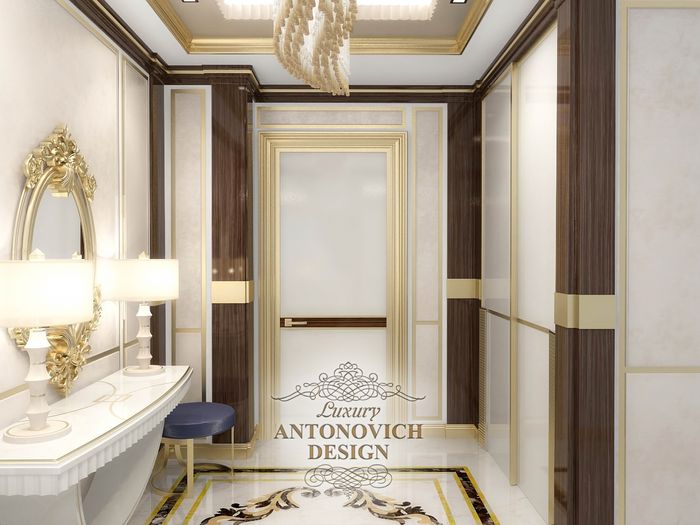 Каждая интерьерная история, которую создает креативный дизайнер студии Лакшери Антонович Дизайн Светлана Антонович, это новый роман, новое повествование о красоте, счастье и теплоте домашнего уюта. И в этой истории эпилогом стал изящный и непринужденный дизайн коридора. В процессе работы над проектом была предложена небольшая перепланировка и часть пространства большого холла была отдана в пользу гостиной. В результате небольшое пространство коридора нужно было оформить так, чтобы оно стало достойным началом роскоши и комфорта. Практичный материал мрамор популярен при оформлении элитных интерьеров. Дополняя его резными орнаментами, дизайнеры привносят особенный шарм красоты и изысканности.
