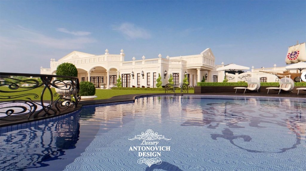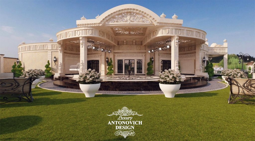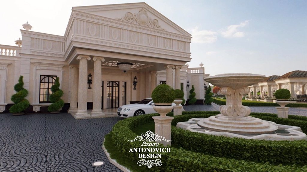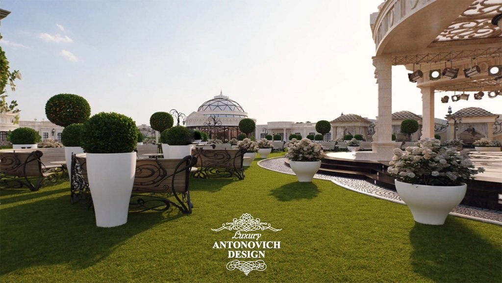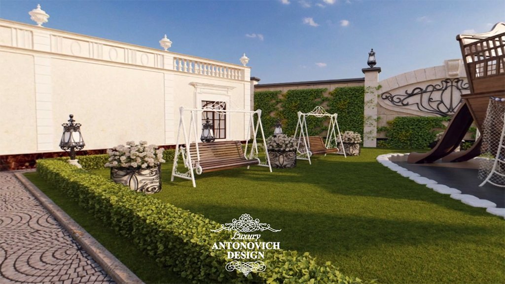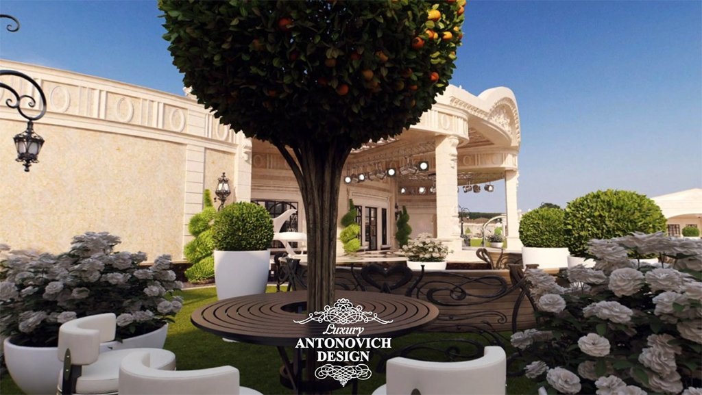 Дизайнеры студии Antonovych Design создали, разрабатывая проект дома в Баку, прекрасное приусадебное пространство с элементами регулярного (французского) сада.