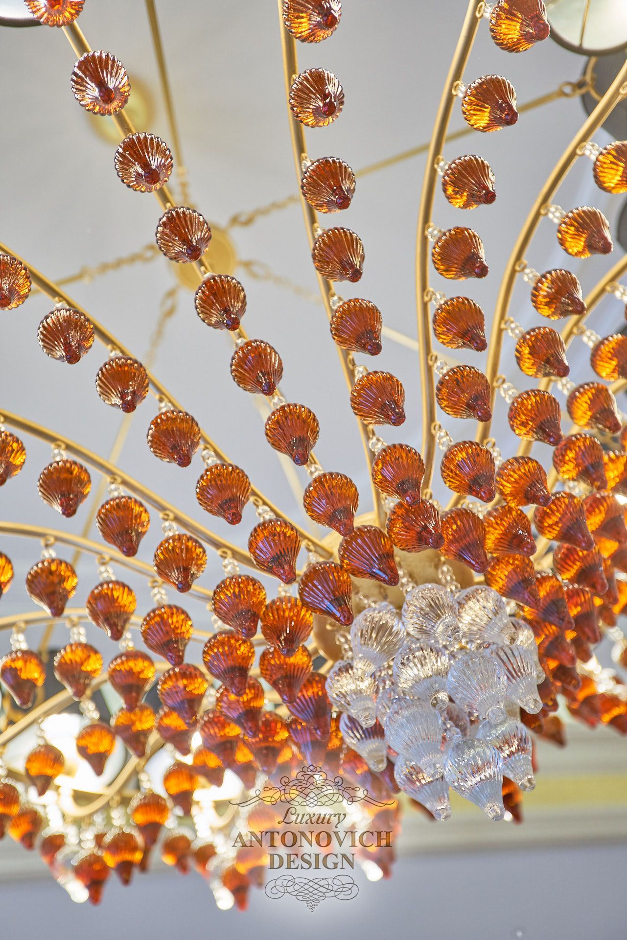 Освещение в зоне гостиной представлено светильниками итальянского бренда Arte di Murano.