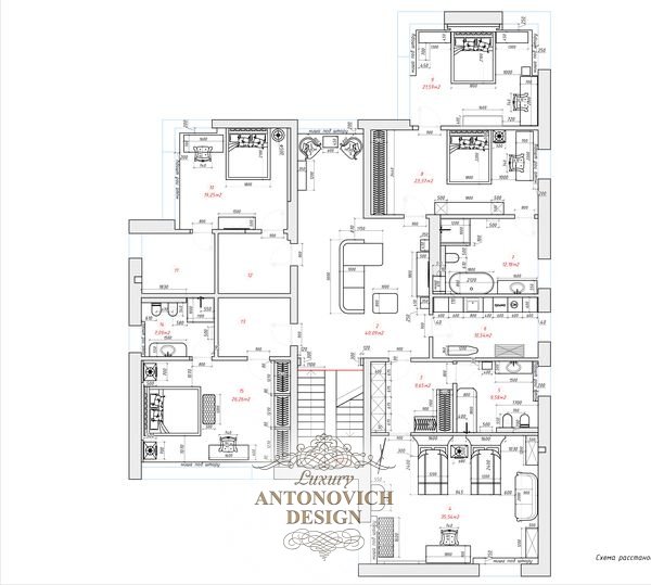 В каждом проекте важной частью работы является планирование расстановки мебели. На этом этапе обсуждается как дизайн концепция интерьера, так и уточняющие моменты по стилю жизни владельцев дома.