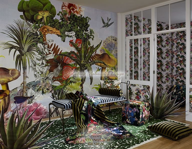 Радужная эклектика, гламурный гротеск и неисчерпаемая фантазия принтов и орнаментов — то, за что традиционно ценят стиль французского модного дома, находит воплощение и в предметном дизайне — красочном текстиле, мебели, аксессуарах и фарфоре.