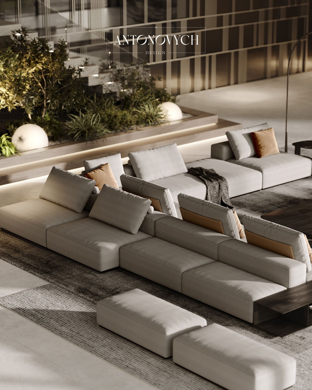 Проекты студии Антонович демонстрируют высокий уровень заботы о комфорте. Каждая деталь, от мягких кресел до просторных диванов, продумана с точки зрения удобства и функциональности.