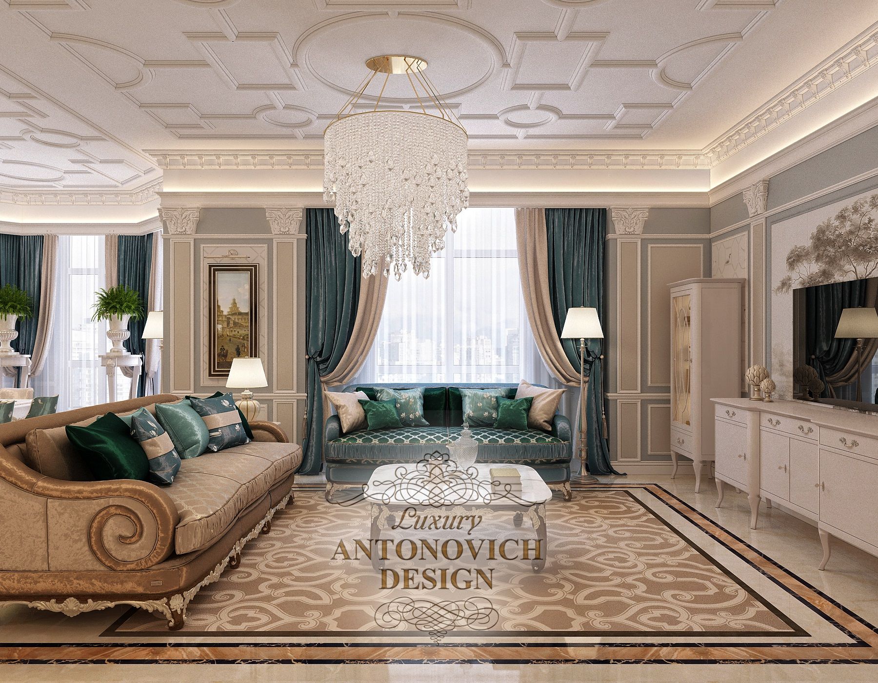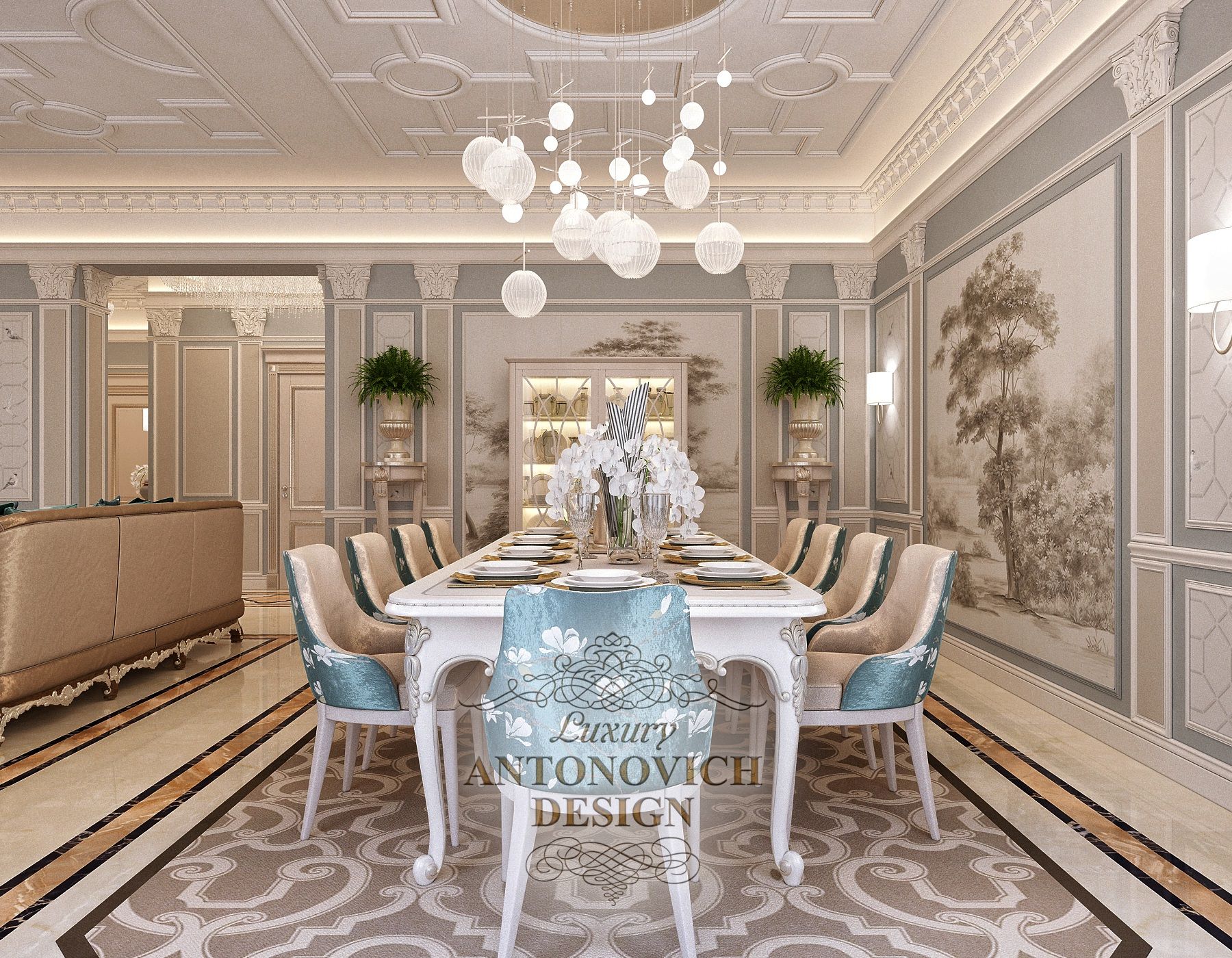 Дизайн интерьера выполнен в стиле респектабельной неоклассики. Неоклассика стала изящным компромиссом, где слились нестареющие веяния прошлого и актуальные тенденции современности.