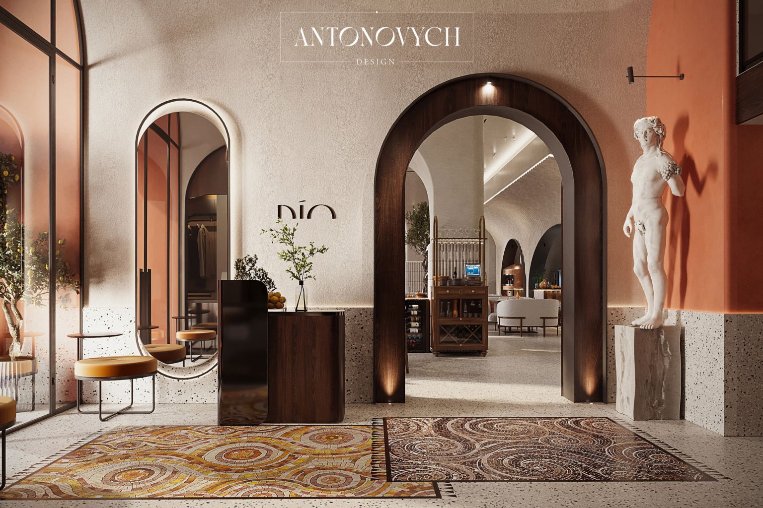 На карте Астаны появился новый гастрономический пункт притяжения — Dio Grand Cafe на улице Сарайшык, 34в. Этот ресторан средиземноморской кухни поражает не только изысканными блюдами, но и уникальным интерьером, разработанным студией Antonovych Design под руководством креативного дизайнера Светланы Антонович.