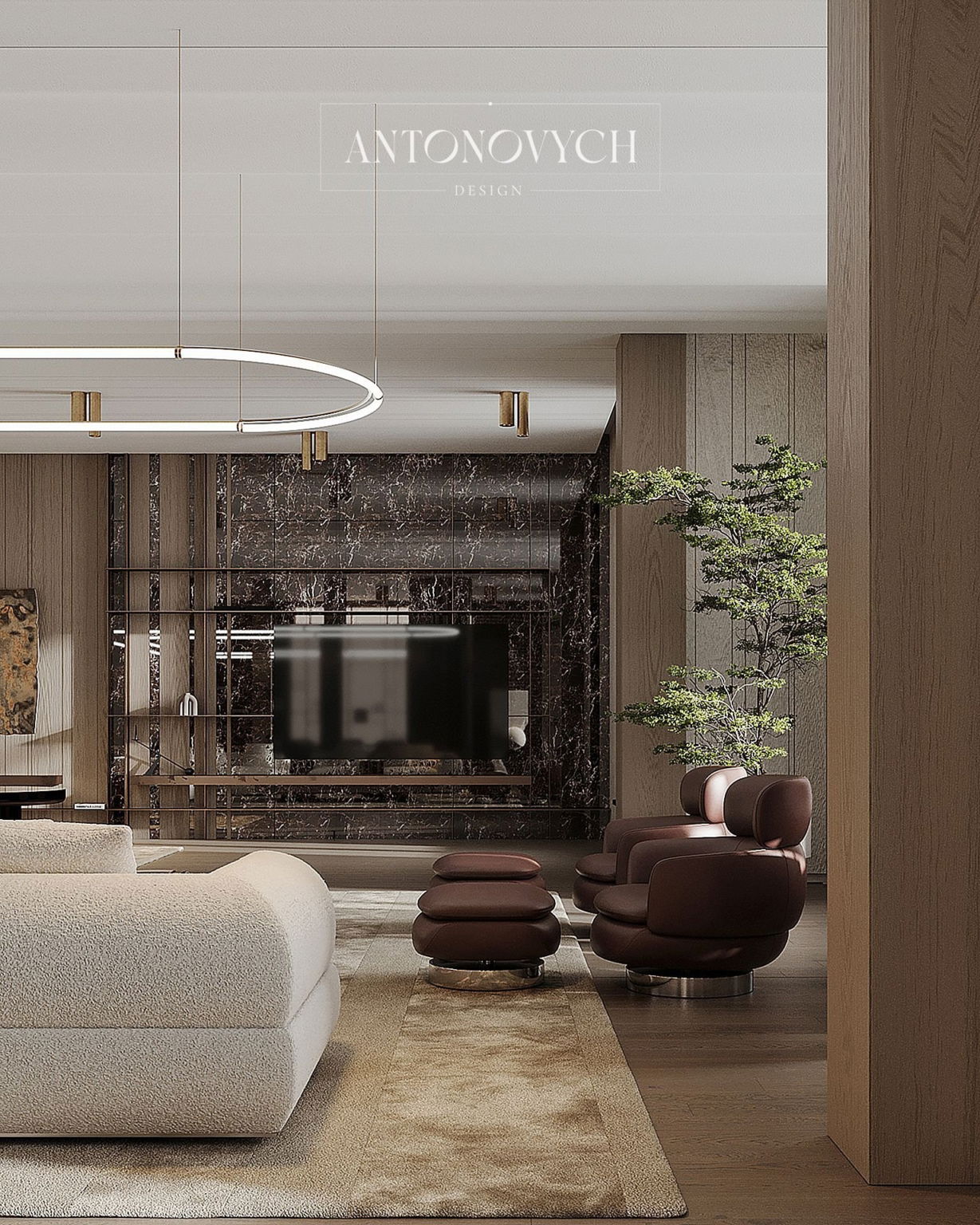 Antonovych Design под руководством Светланы Антонович разрабатывает интерьерные проекты для апартаментов ЖК The One, сочетая современные минималистические решения с утонченным стилем. В апартаментах используются природные материалы, такие как дерево и камень, что подчеркивает уют и гармонию в каждом пространстве. Дерево теплых оттенков и мраморные элементы создают ощущение благородства и эксклюзивности.