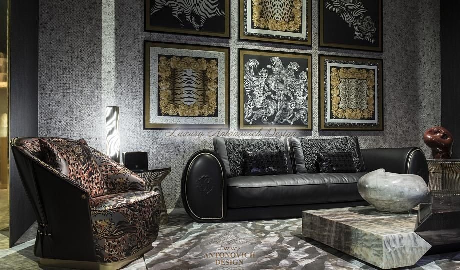 В коллекции 2019 года культовые символы появляются в роскошных деталях и в смелых рисунках диких животных в мебельной коллекции, в чувственный символ дома Cavalli становится роскошной деталью в новой коллекции.